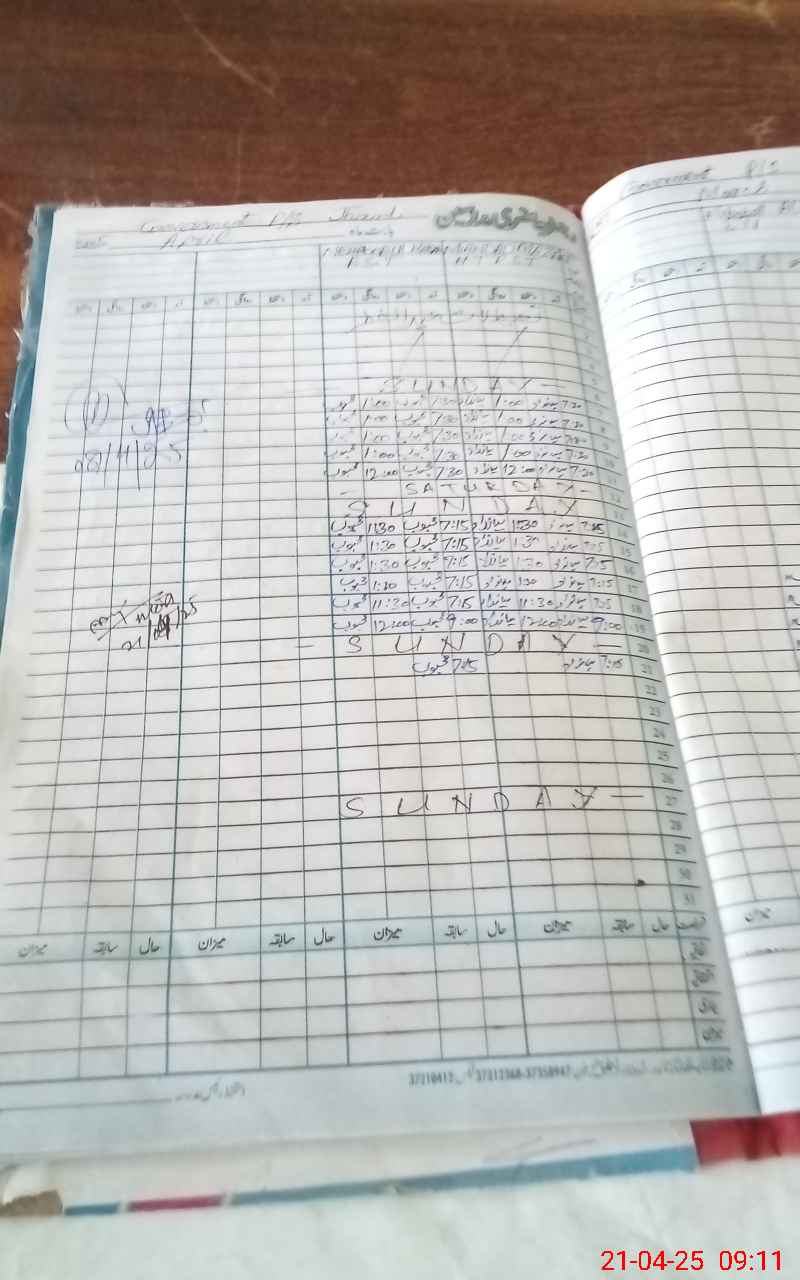 | CNIC | Full Name | Designation | R/C | Absence During Last Calender Month |