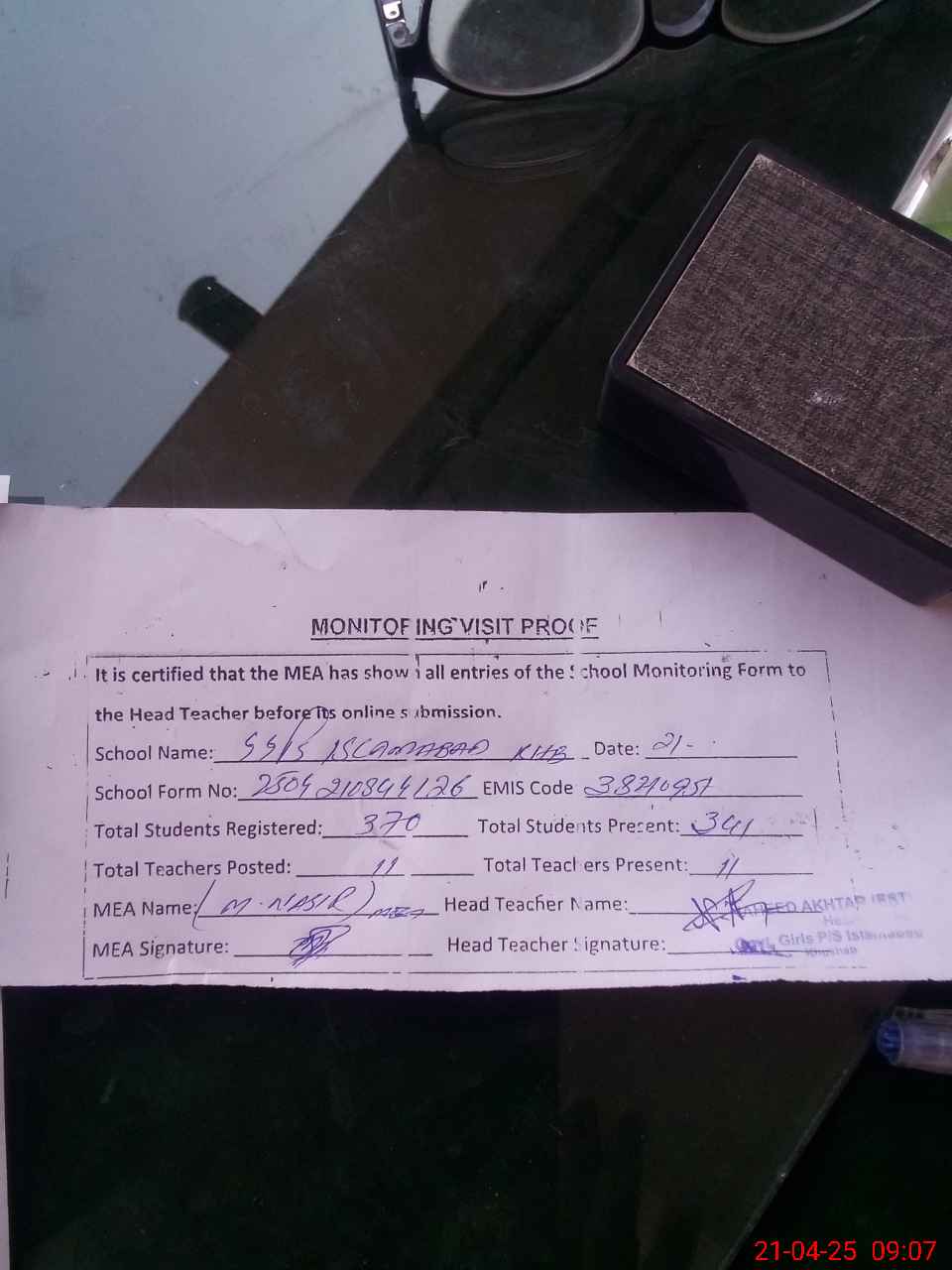 | EMIS Code: 38210951 | Name of School: GGPS ISLAM ABAD KHUSHAB | |||