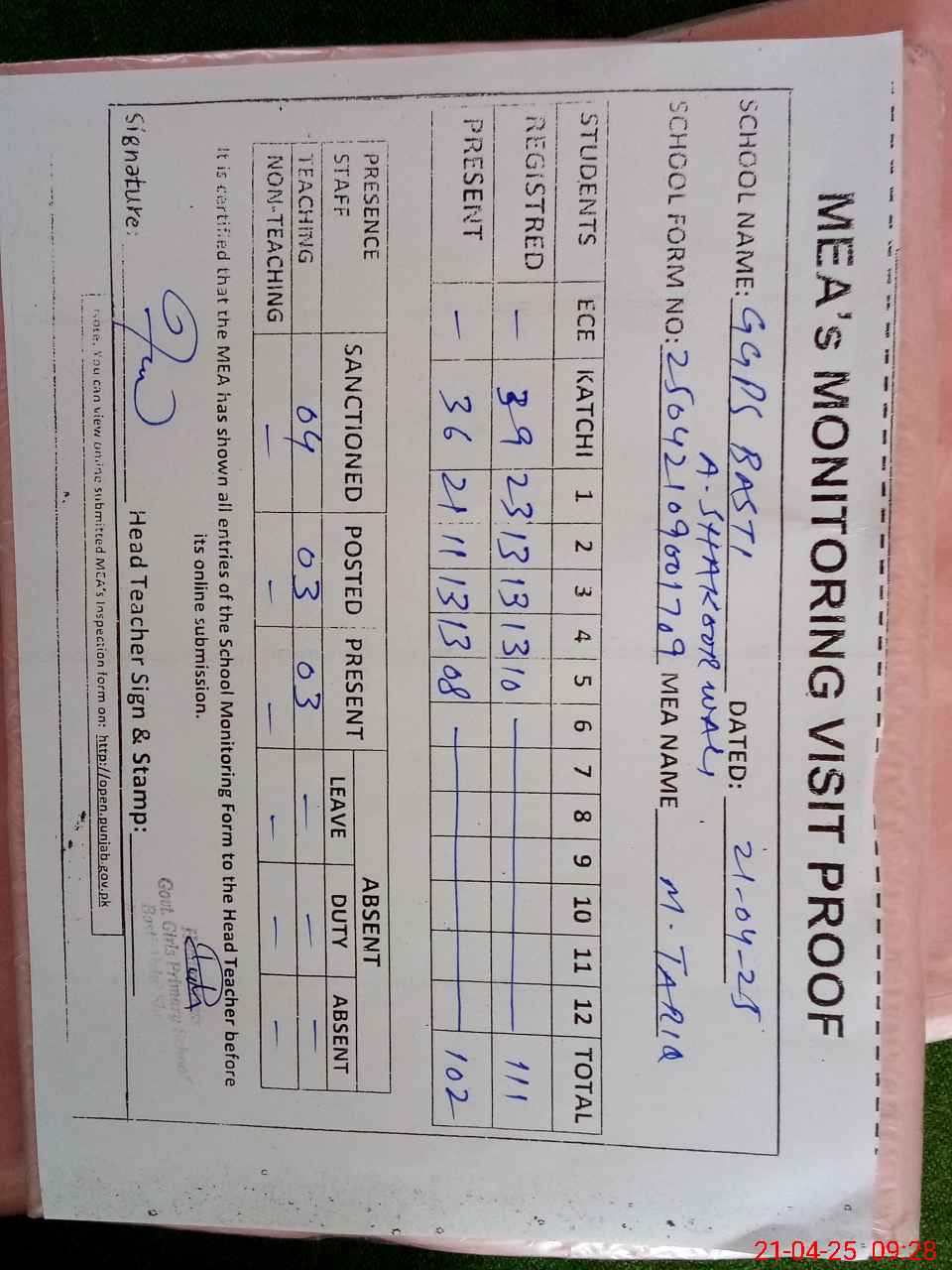 | EMIS Code: 36410469 | Name of School: GGPS BASTI ABDUL SHAKOOR WALI, ABDUL HAKIM | |||
