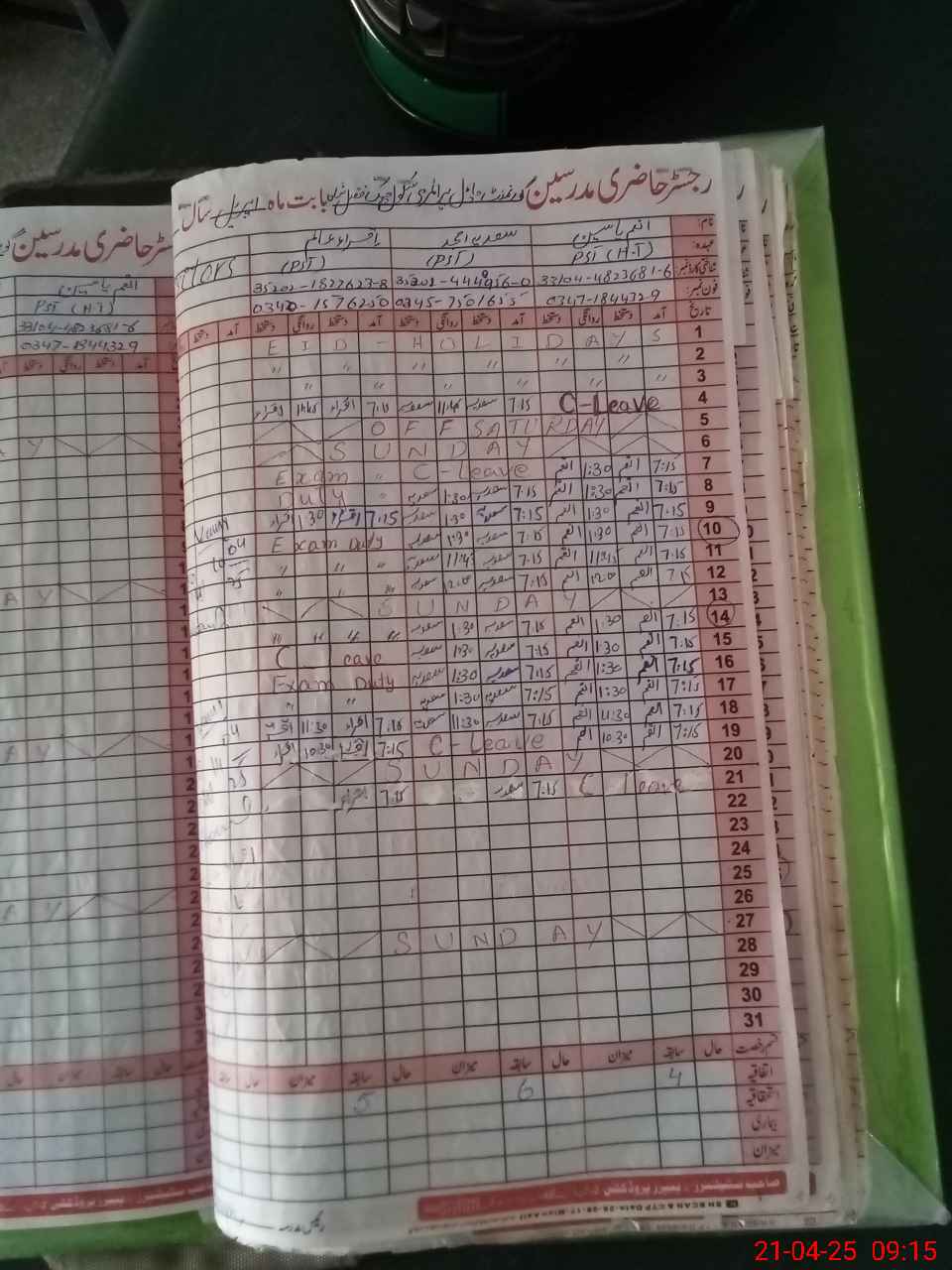 | Leave | Duty | Absent | Maternity | Medical | Ex- Pak |
