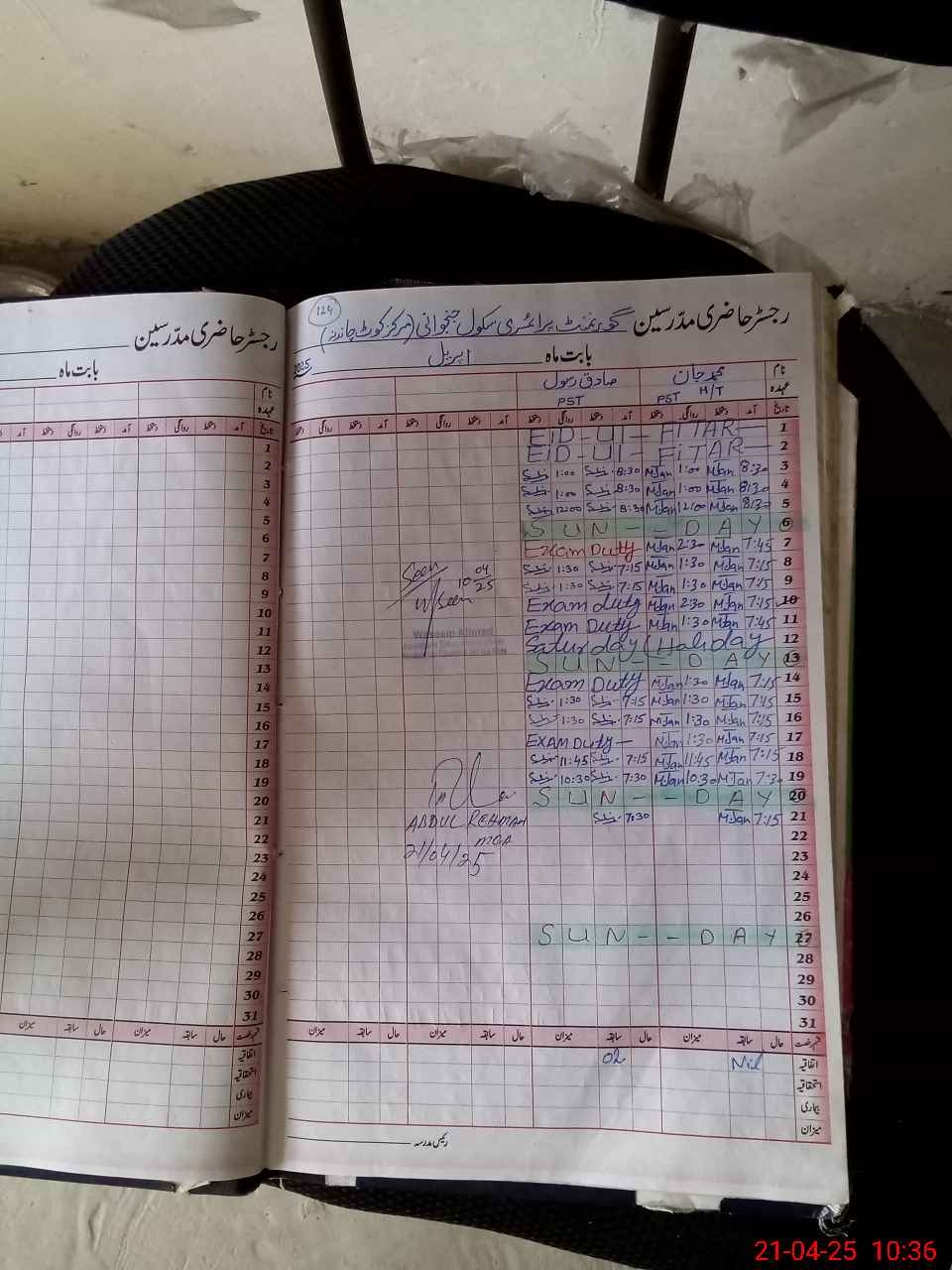 | Name: Mu**** Ja**** Designation: (School Headmaster's/Headmistress's) PST Phone/Cell Number: 03**** |