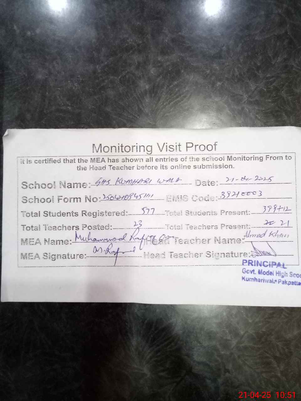 | EMIS Code: 39210003 | Name of School: GHS KUMHARAI WALA | |||