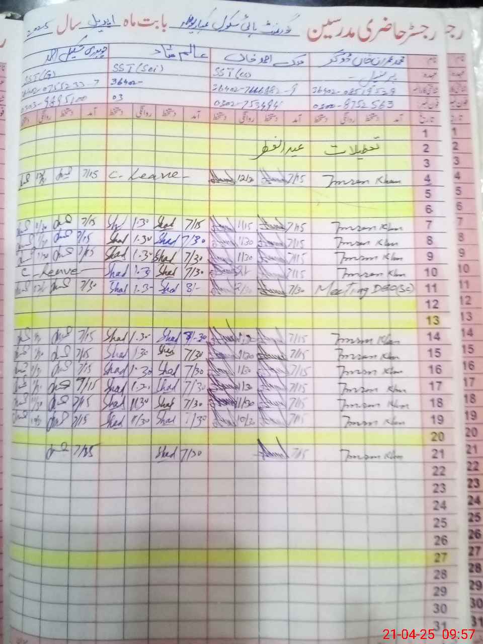 | Name: MU**** IM**** KH**** Designation: (School Headmaster's/Headmistress's) PRINCIPAL Phone/Cell Number: 03**** |