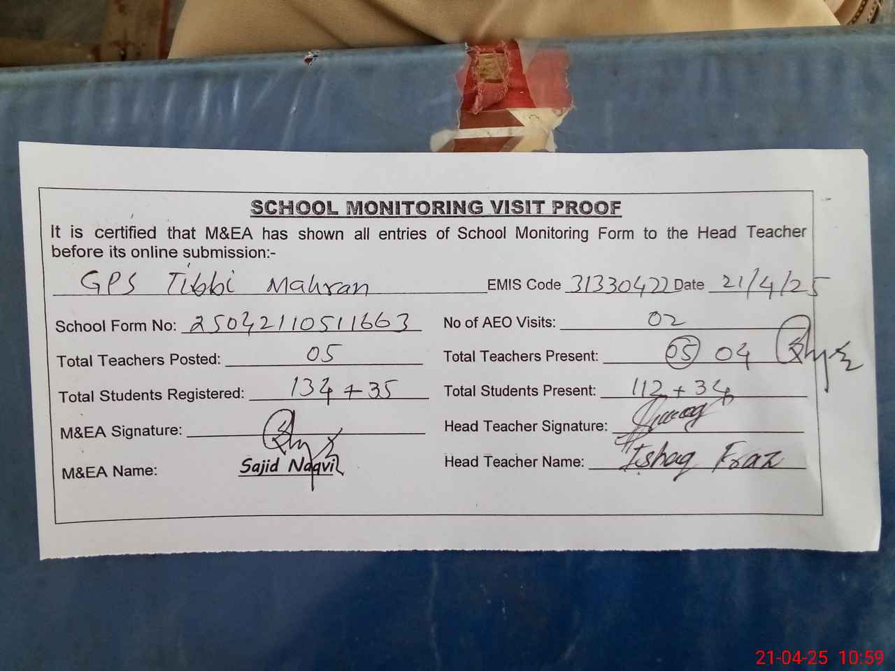 | EMIS Code: 31330422 | Name of School: GPS TIBBI MAHARAN | |||