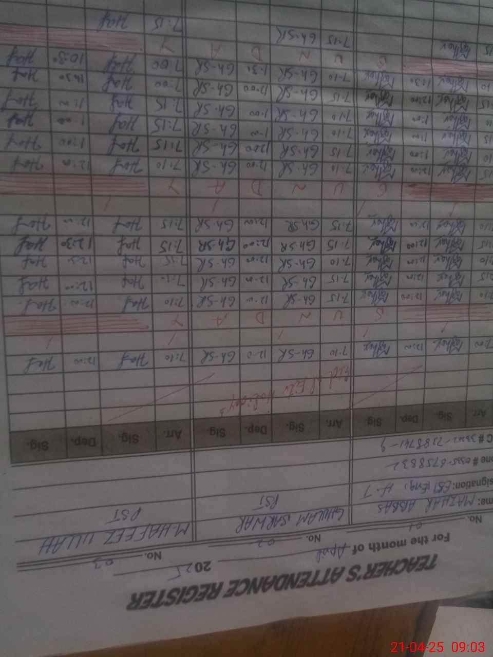| Name: MA**** AB**** Designation: (School Headmaster's/Headmistress's) PST Phone/Cell Number: 03**** |