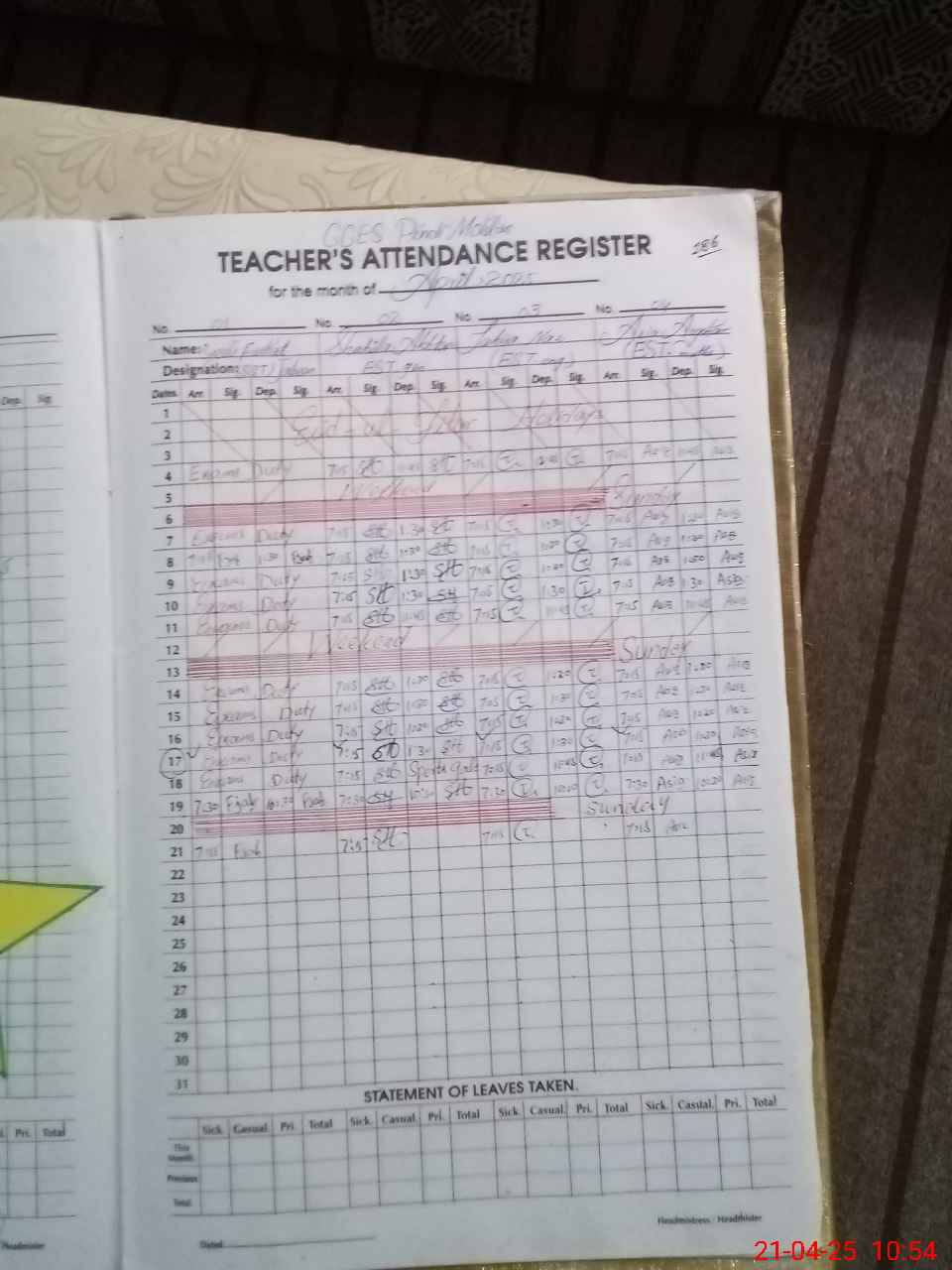 | Leave | Duty | Absent | Maternity | Medical | Ex- Pak |