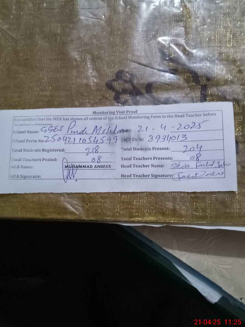 | EMIS Code: 39311013 | Name of School: GGES CHAK PINDI MOHLAN | |||