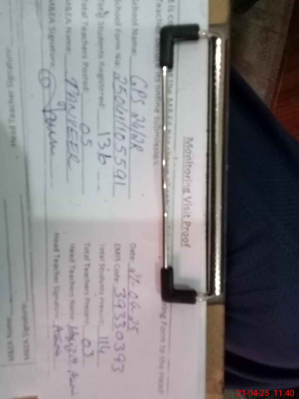 | Attendance Register | Head Teacher | MEA with School | Visit Proof |