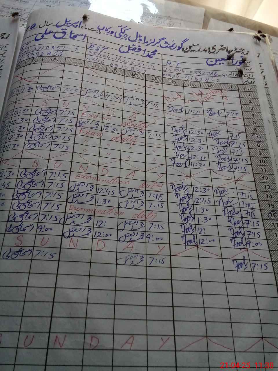 | CNIC | Full Name | Designation | R/C | Absence During Last Calender Month |