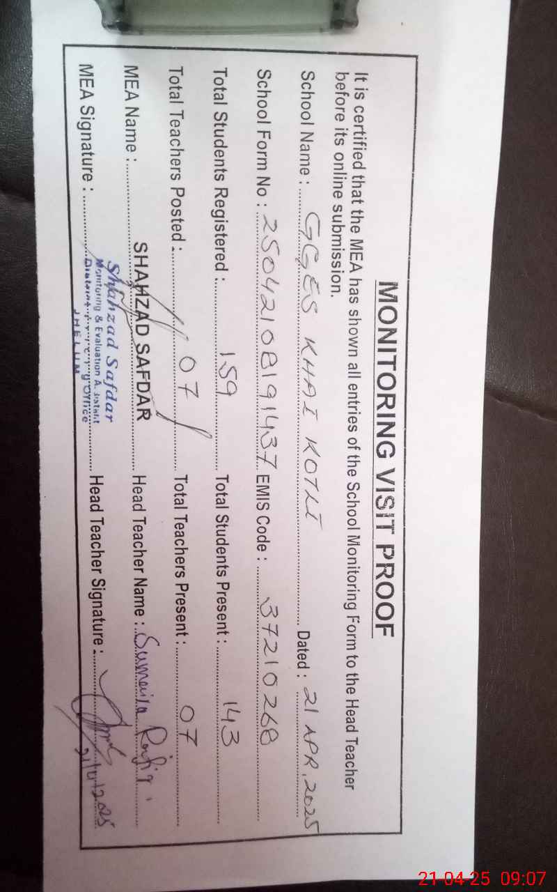| EMIS Code: 37210268 | Name of School: GGES KHAI KOLTI | |||