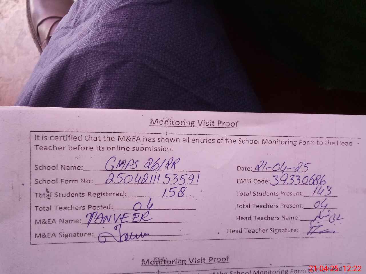 | EMIS Code: 39330686 | Name of School: GMPS CHAK NO. 26/2-R | |||