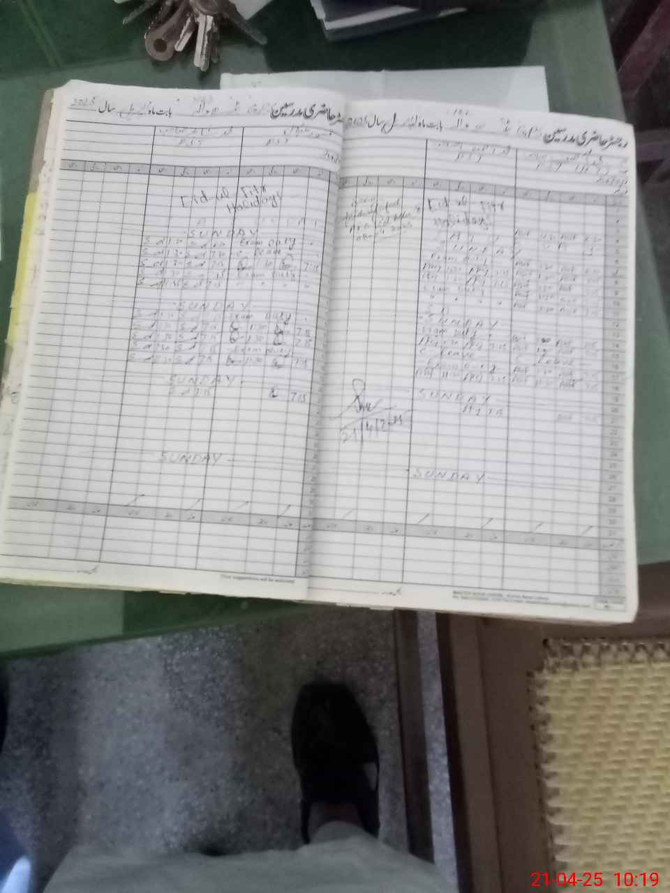 | CNIC | Full Name | Designation | R/C | Absence During Last Calender Month |