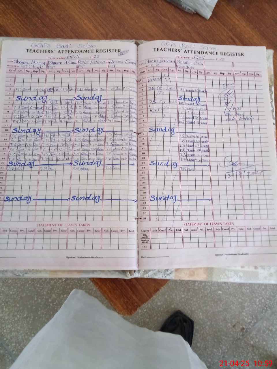 | Leave | Duty | Absent | Maternity | Medical | Ex- Pak |