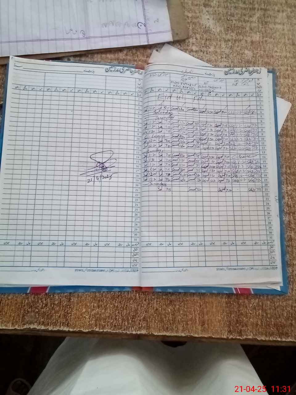 | CNIC | Full Name | Designation | R/C | Absence During Last Calender Month |