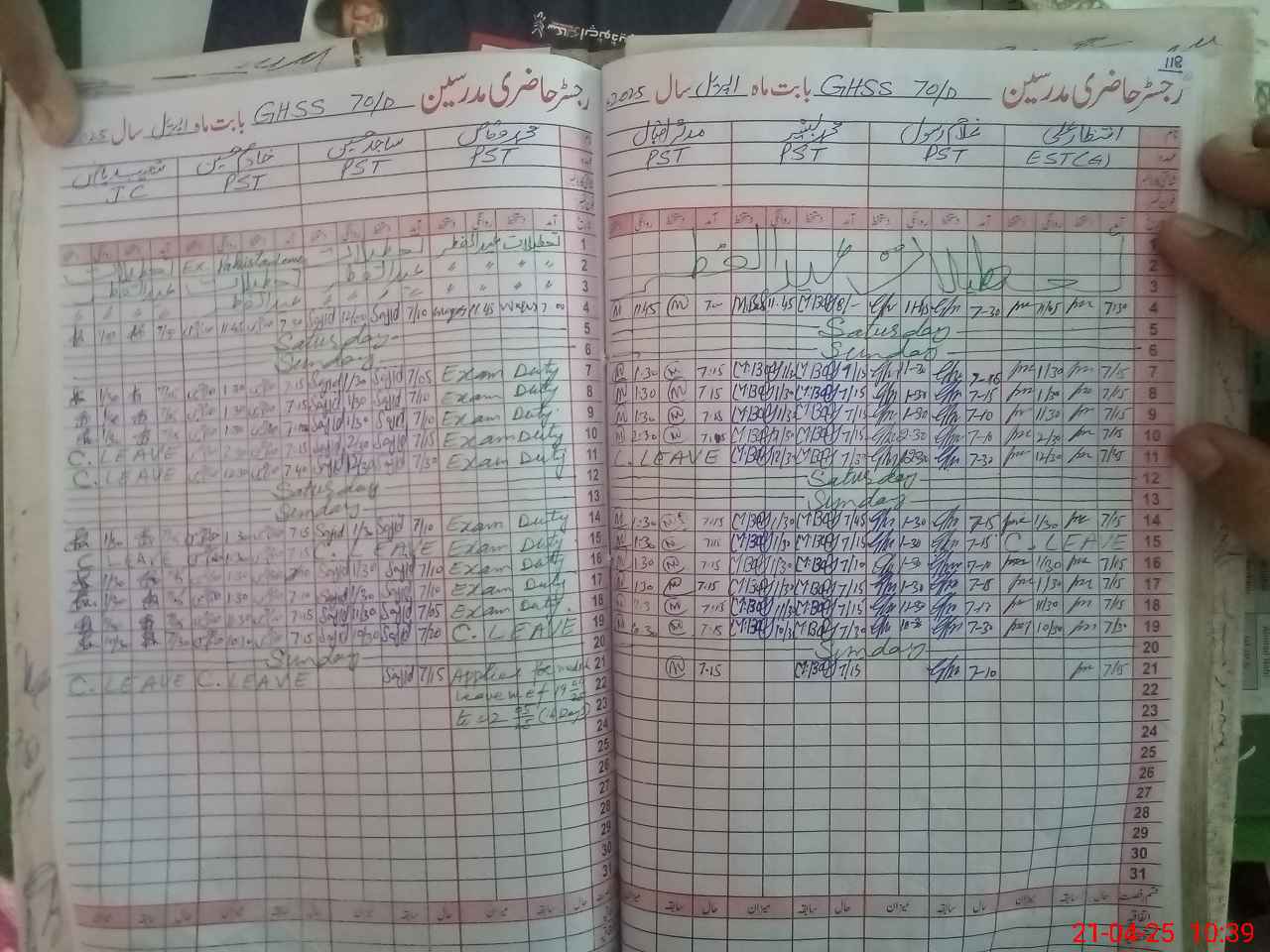 | Leave | Duty | Absent | Maternity | Medical | Ex- Pak |