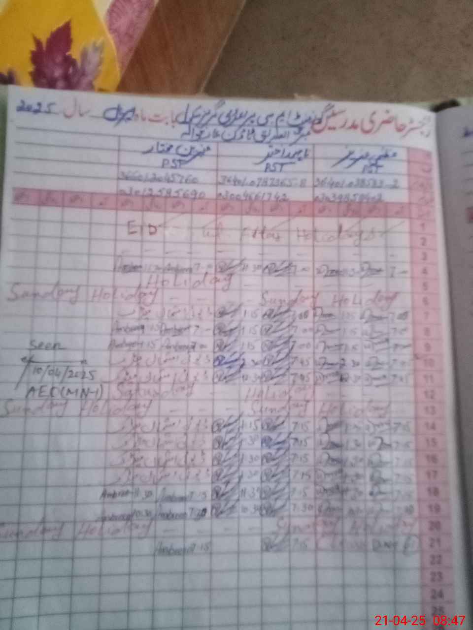 | Name: FA**** GU**** Designation: (School Headmaster's/Headmistress's) PST Phone/Cell Number: 03**** |