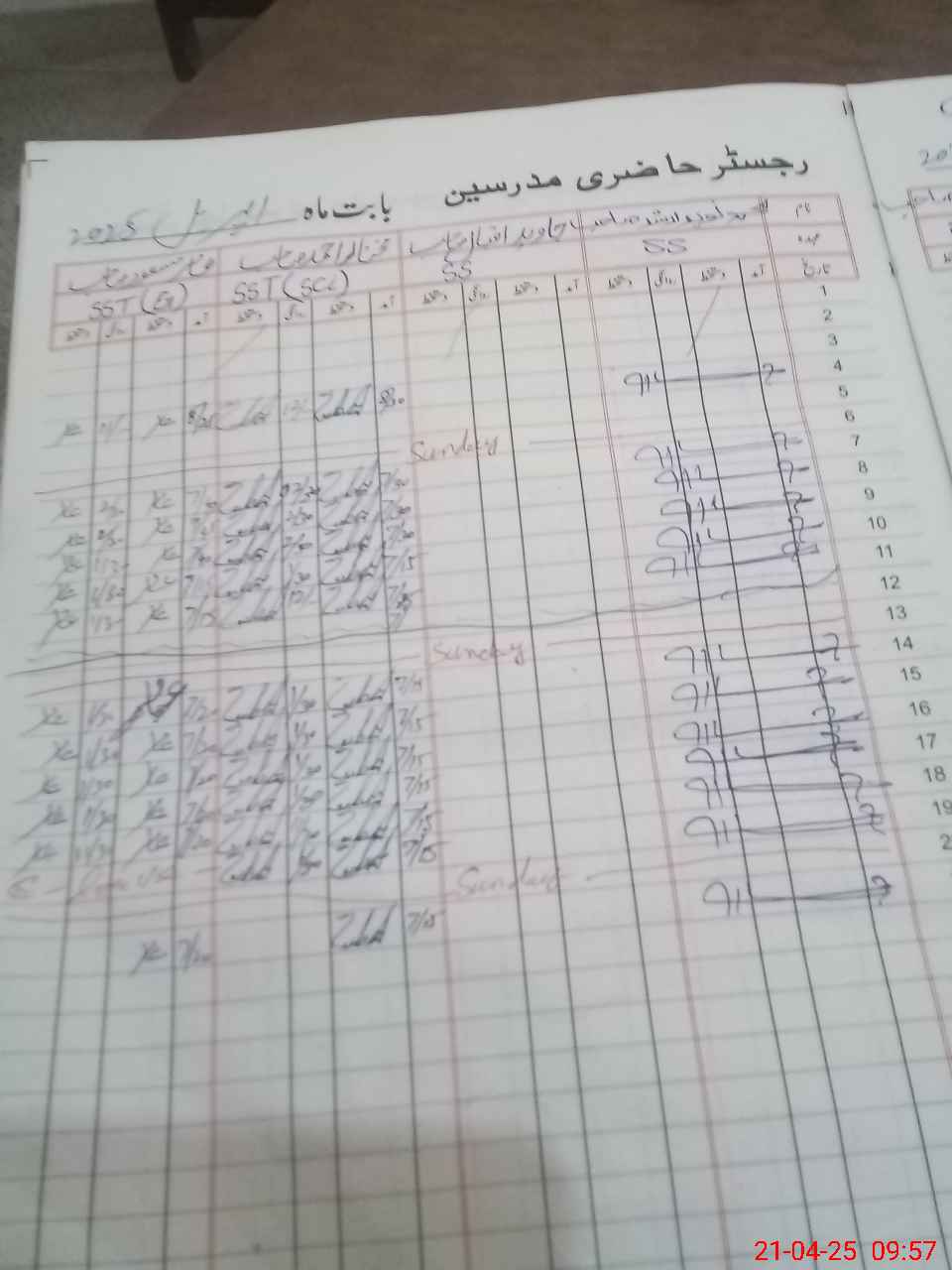 | CNIC | Full Name | Designation | R/C | Absence During Last Calender Month |