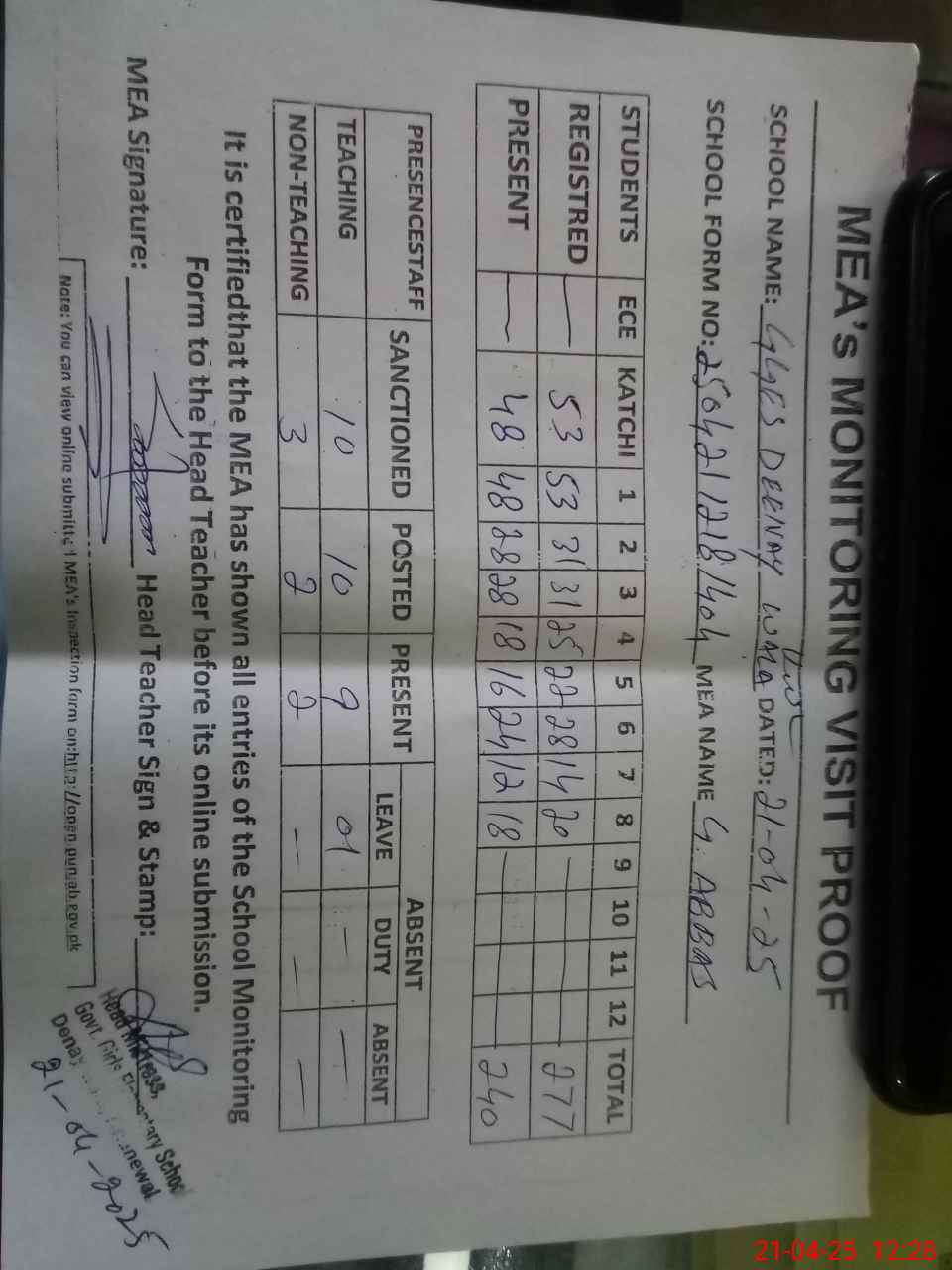| EMIS Code: 36420105 | Name of School: GGES DENAY WALA, KHANEWAL | |||