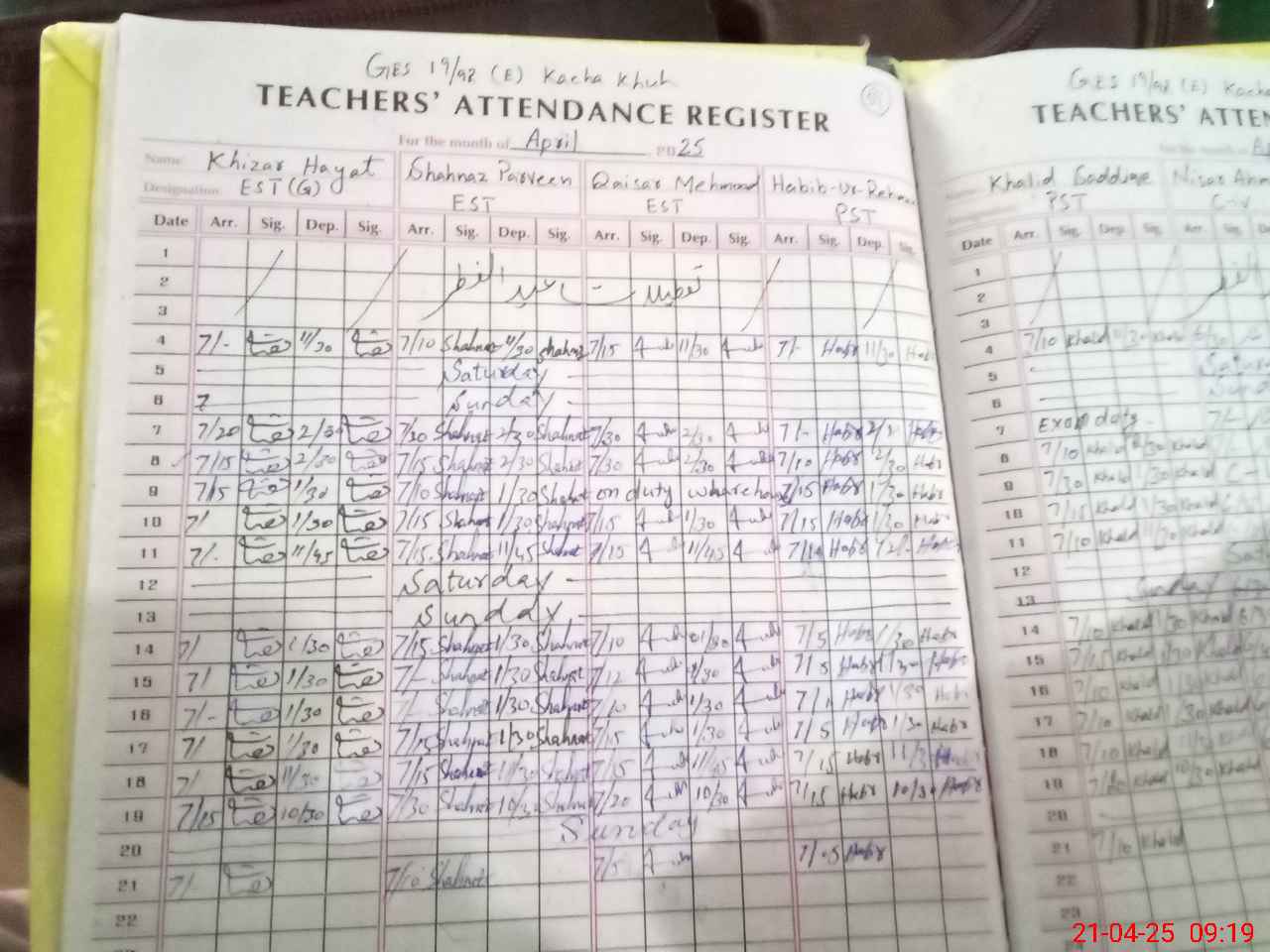 | Name: Kh**** Ha**** Designation: (School Headmaster's/Headmistress's) EST Incharge Phone/Cell Number: 03**** |