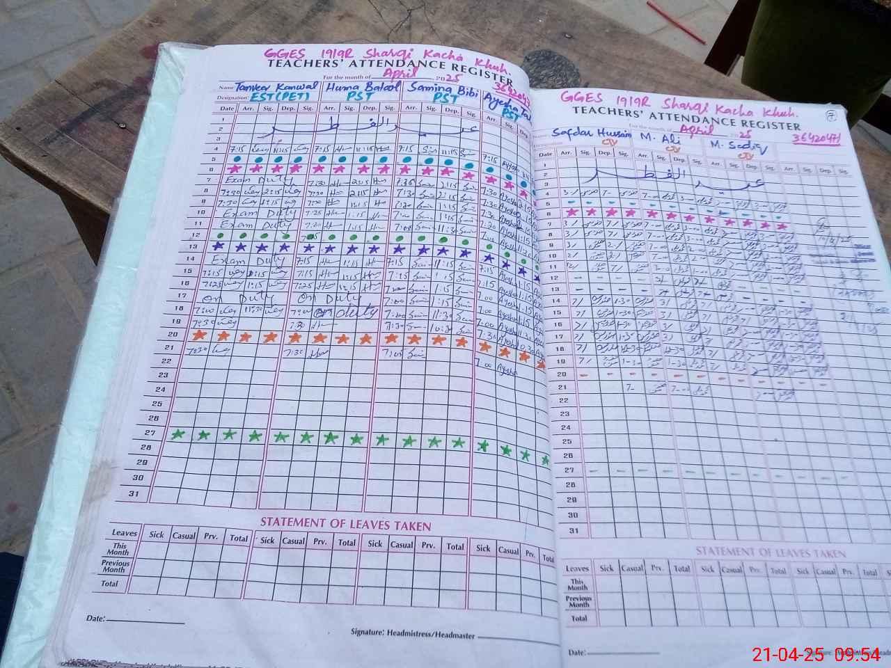 | Leave | Duty | Absent | Maternity | Medical | Ex- Pak |