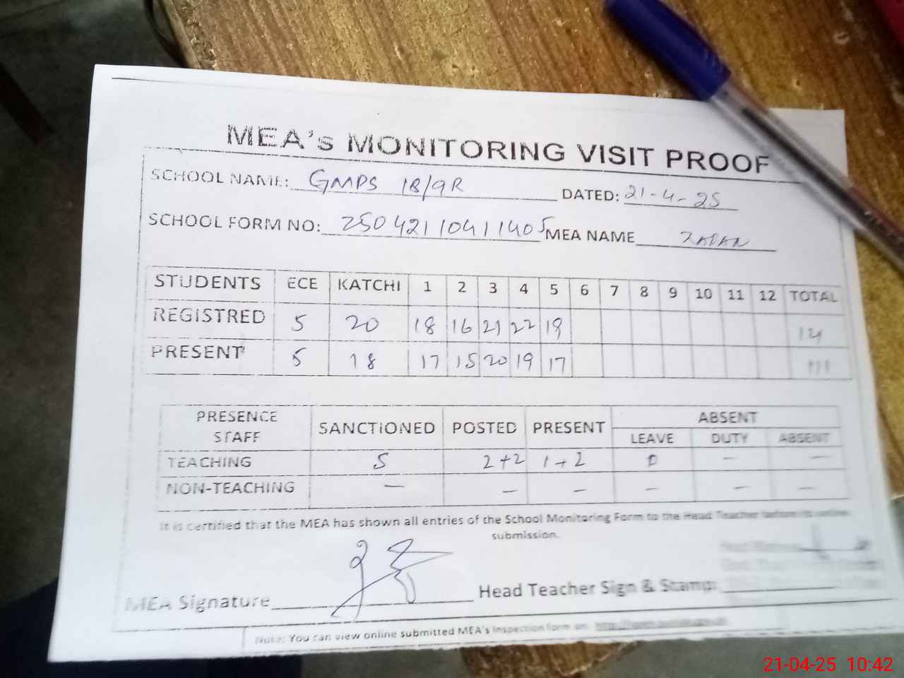 | EMIS Code: 36420447 | Name of School: GMPS 18/9-R, KACHA KHUH | |||