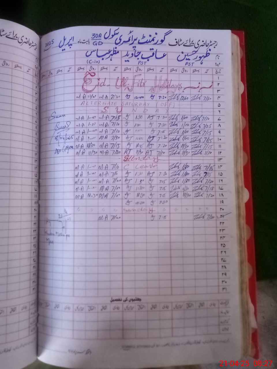 | CNIC | Full Name | Designation | R/C | Absence During Last Calender Month |