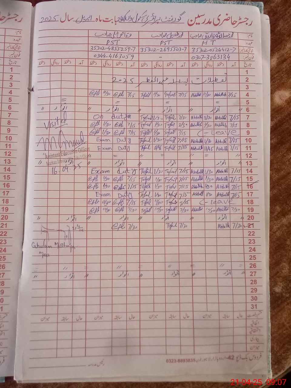 | Name: AB**** FA**** Designation: (School Headmaster's/Headmistress's) PST Phone/Cell Number: 03**** |