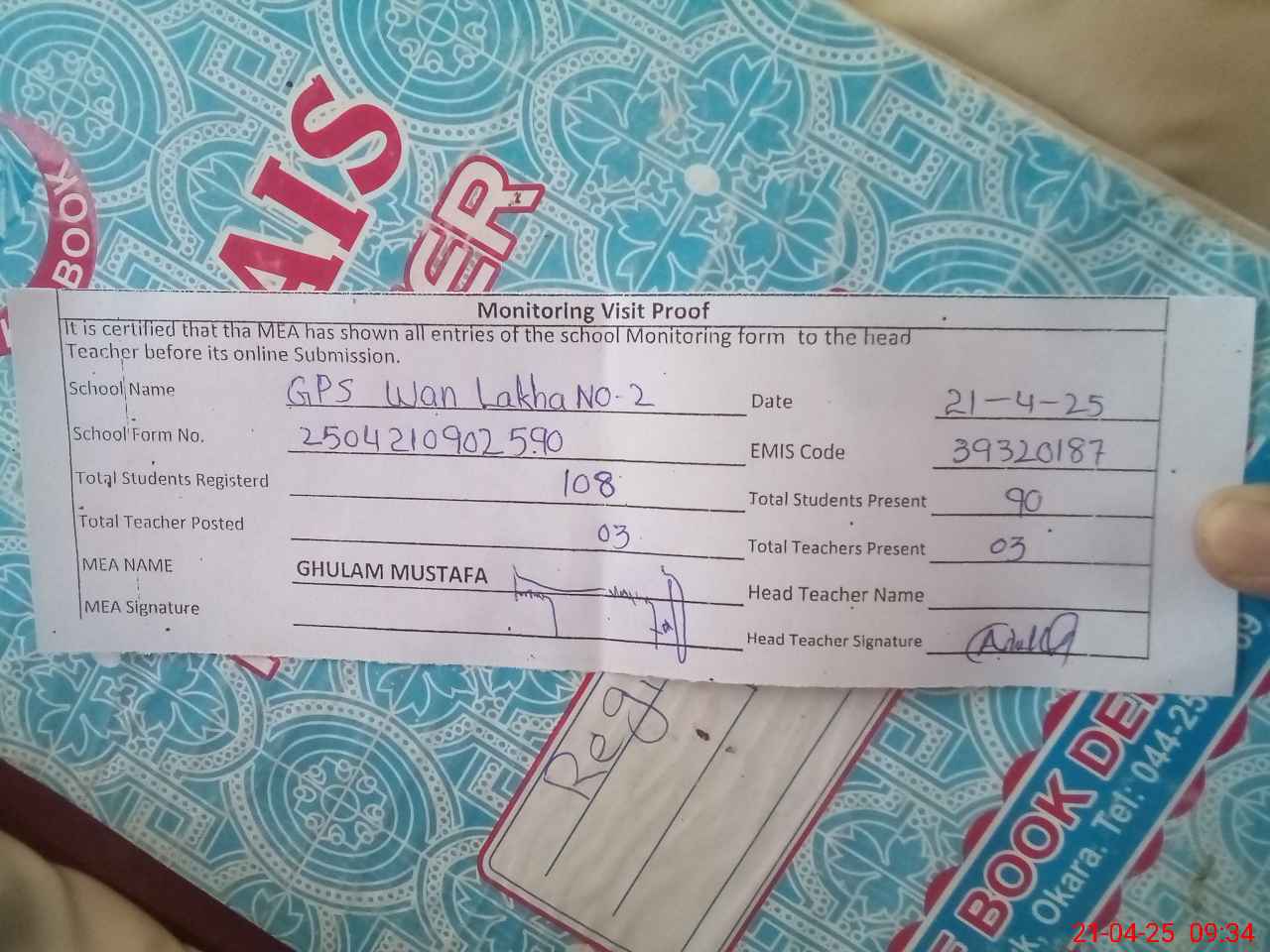 | EMIS Code: 39320187 | Name of School: GPS WAN LAKHA NO 2 | |||