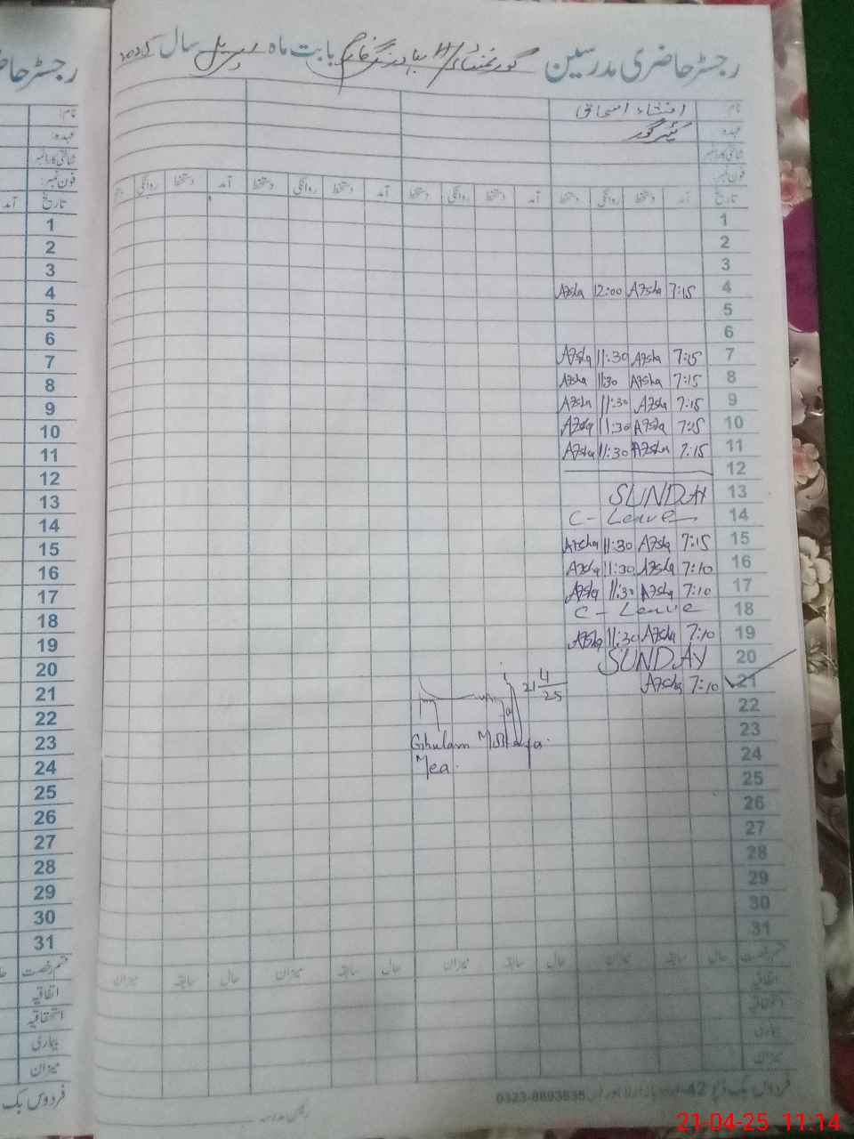 | 35**** | Mu**** Ra**** Sa**** | PST | Regular | 0 | 0 | 31 | 0 | 0 | 0 | 0 | 0 | 0 | Absent (Un-Authorized) |