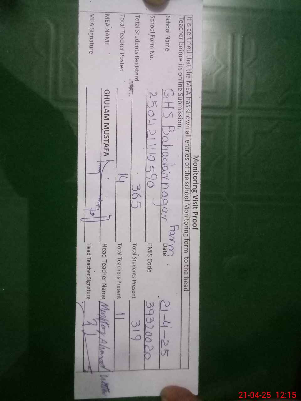 | EMIS Code: 39320020 | Name of School: GHS BAHADUR NAGAR FARM | |||