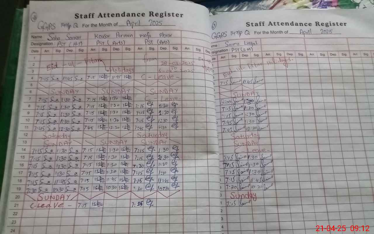 | 31**** | Sa**** Sa**** | PST | Regular | 0 | 0 | 0 | 0 | 0 | 0 | 0 | 0 | 0 | Casual |