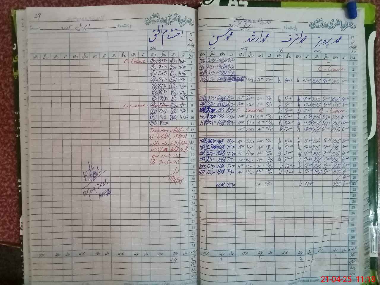 | CNIC | Full Name | Designation | R/C | Absence During Last Calender Month |