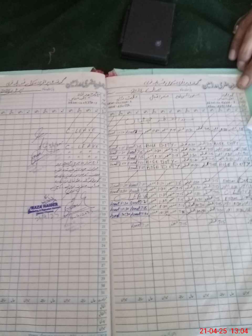 | Leave | Duty | Absent | Maternity | Medical | Ex- Pak |
