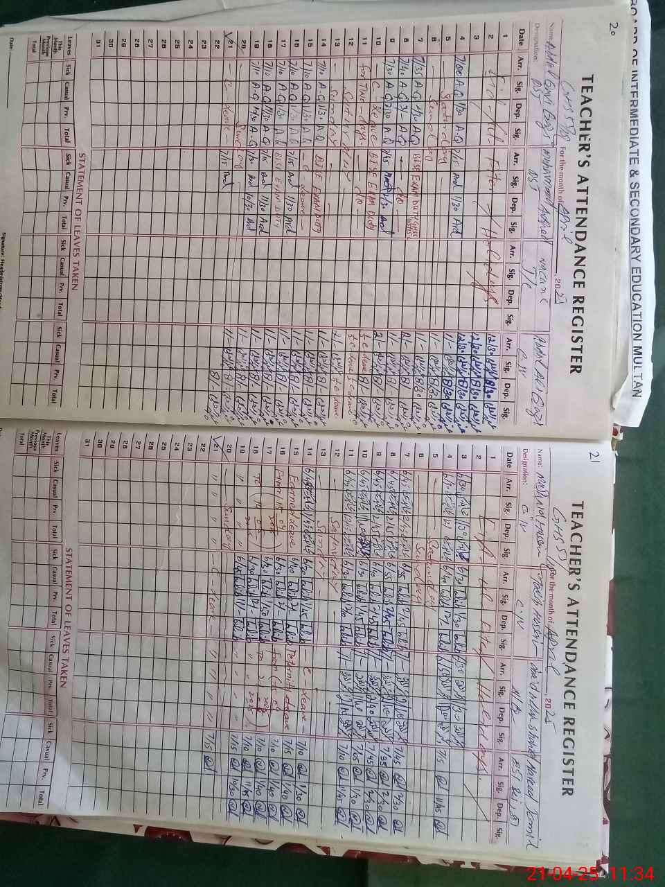 | Remarks (Use Separate Page if Required): FORMS D4 FOR DISTRIBUTION OF BOOKS ARE NOT AVAILABLE NSB GRANTS AND FTF RECORDS ARE NOT MAINTAINED SIX TOILETS FOUND LOCKED BLOCKED AND NON FUNCTIONAL IN WHICH THREE TOILETS ARE WITHOUT ROOF TOILETS ARE NOT CLEANED LESSON PLANS ARE NOT AVAILABLE ABDUL QAVI QAZI IS ON CASUAL LEAVE TODAY MANUAL LEAVE APPLICATION IS AVAILABLE DUE TO SIS HRMS IS NOT AVAILABLE AND ACCOUNT IS NOT TRANSFERRED TO NEXT INCHARGE HEAD MASTER MUBASHAR HUSSAIN SSE SCI WASH CLUB RECORDS ARE NOT AVAILABLE RANDOM CLASS TWO IS NOW IN CLASS SIX | |||||
