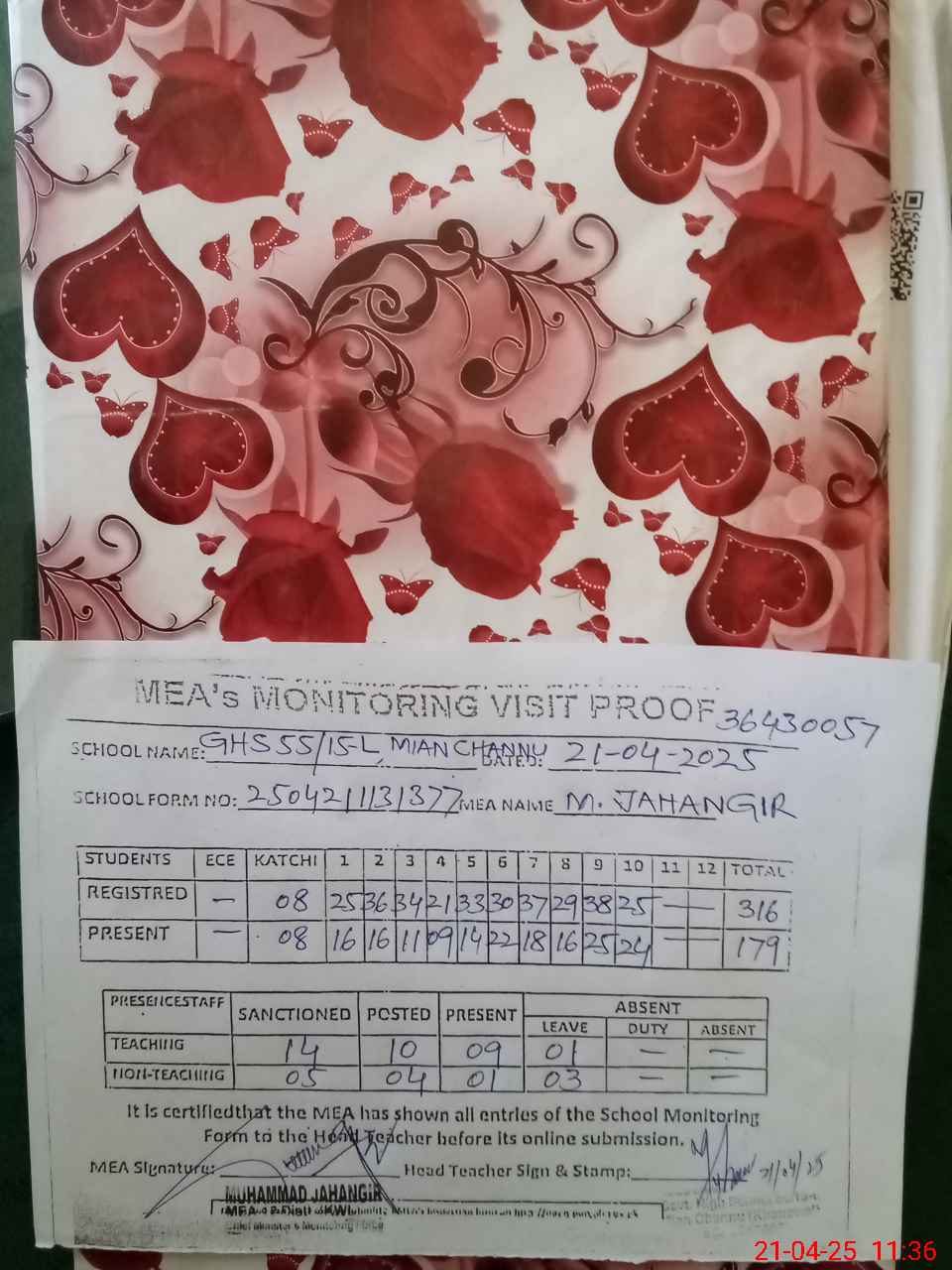 | EMIS Code: 36430057 | Name of School: GHS 55/15-L, MIAN CHANNU | |||