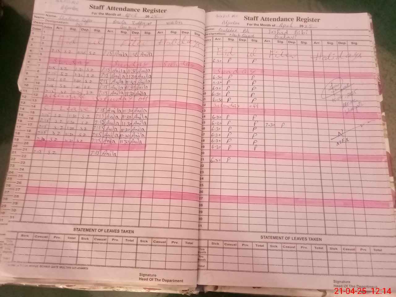 | Name: Uz**** Ba**** Designation: (School Headmaster's/Headmistress's) Headmistres Phone/Cell Number: 03**** |