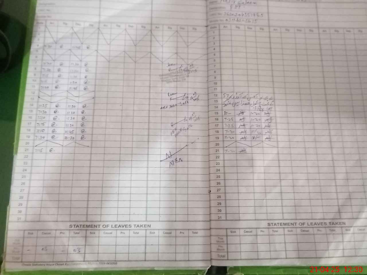 | CNIC | Full Name | Designation | R/C | Absence During Last Calender Month |
