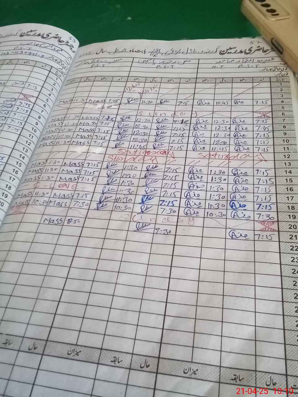 | CNIC | Full Name | Designation | R/C | Absence During Last Calender Month |