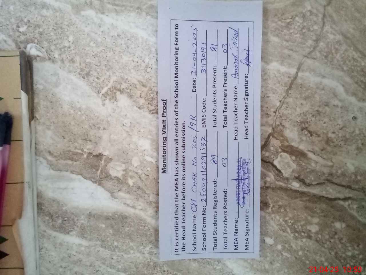 | EMIS Code: 31130193 | Name of School: GPS CHAK NO.205/9-R | |||