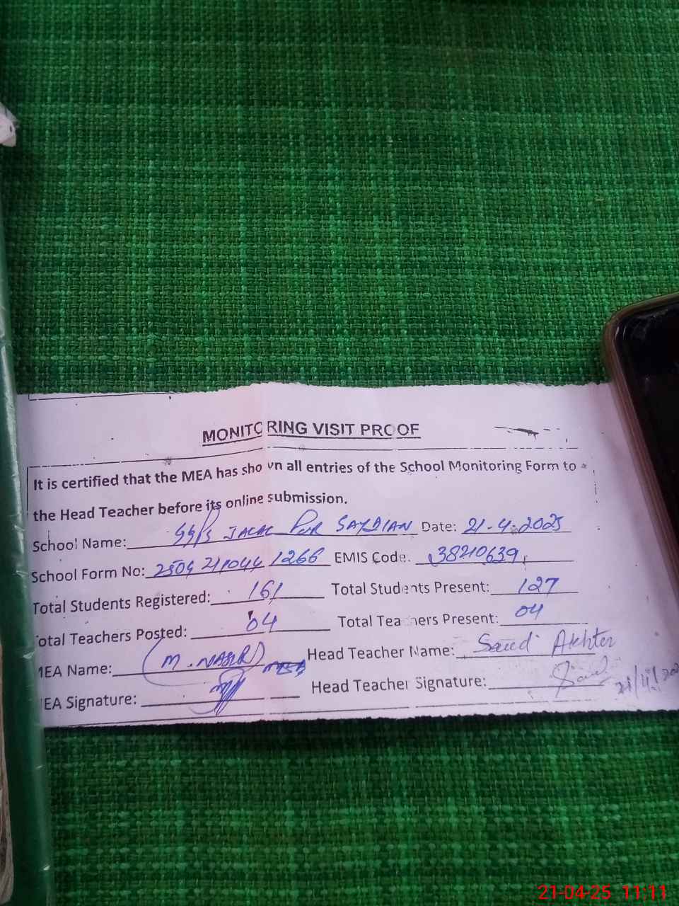 | EMIS Code: 38210639 | Name of School: GGPS JALALPUR SAYEDAN | |||