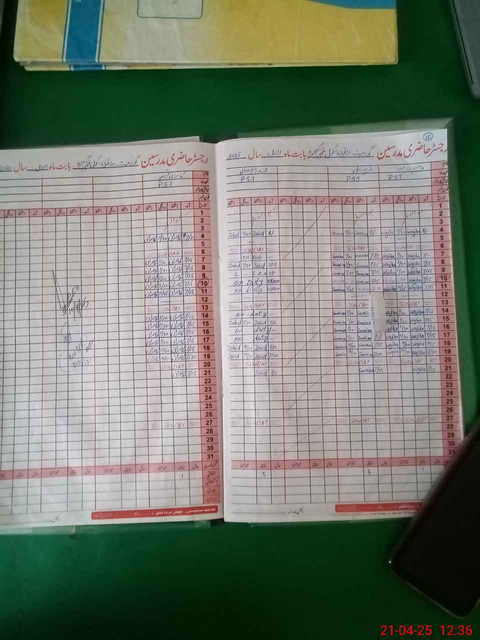 | CNIC | Full Name | Designation | R/C | Absence During Last Calender Month |