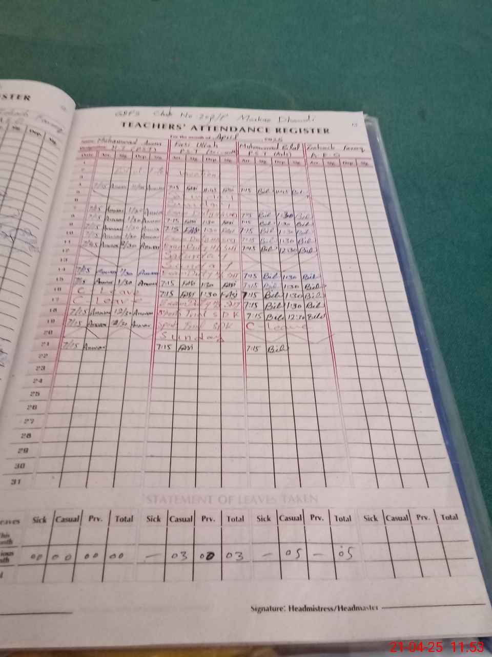 | Name: M.**** Designation: (School Headmaster's/Headmistress's) PST Phone/Cell Number: 03**** |