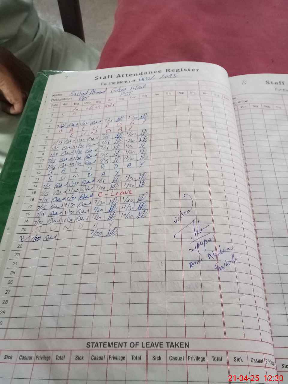 | Name: SA**** AH**** Designation: (School Headmaster's/Headmistress's) PST Phone/Cell Number: 03**** |