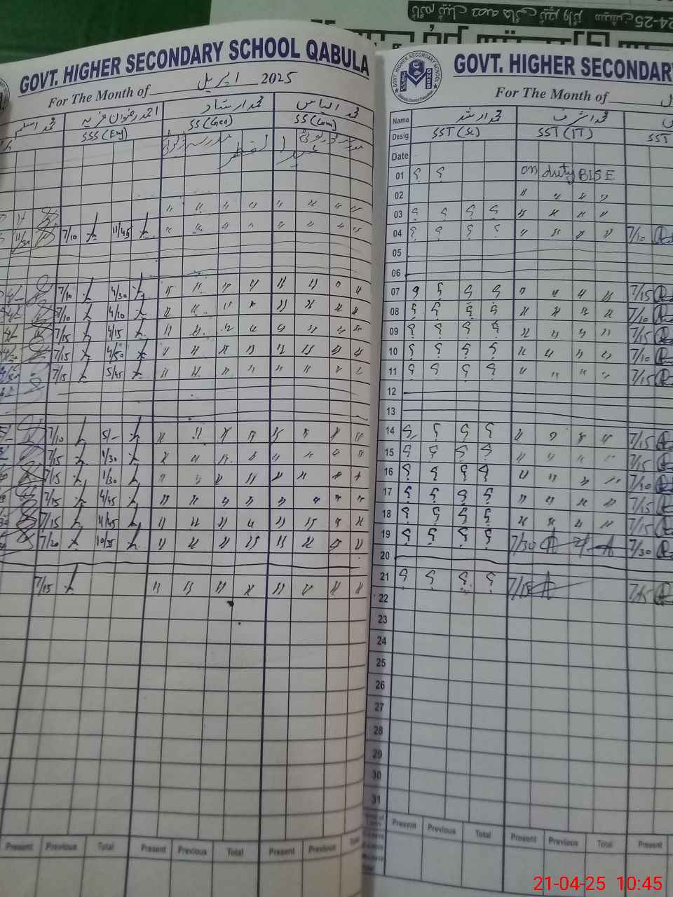 | 36**** | Mu**** Ar**** | Regular | 0 | 0 | 31 | 0 | 0 | 0 | 0 | 0 | 0 | Absent (Un-Authorized) | |