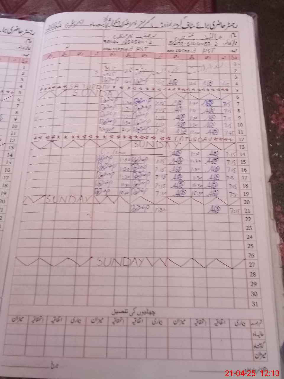 | CNIC | Full Name | Designation | R/C | Absence During Last Calender Month |