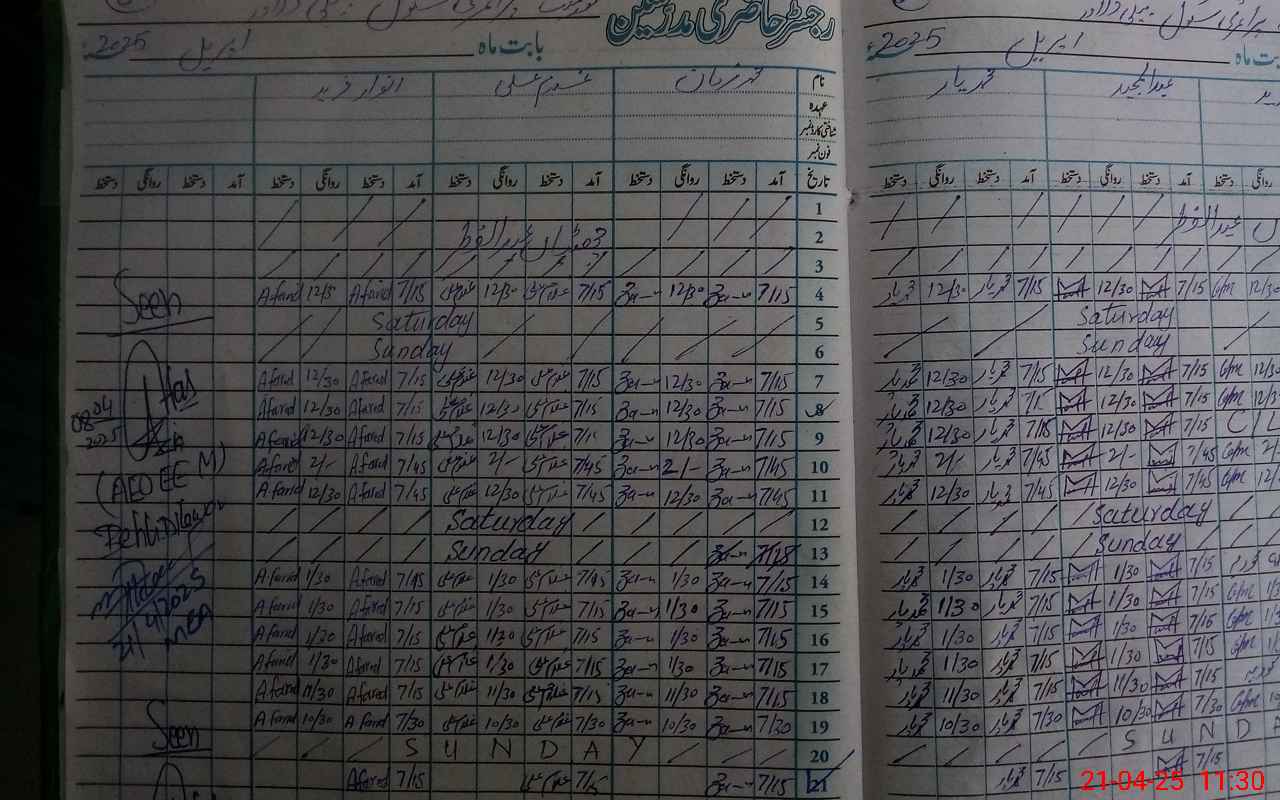 | CNIC | Full Name | Designation | R/C | Absence During Last Calender Month |