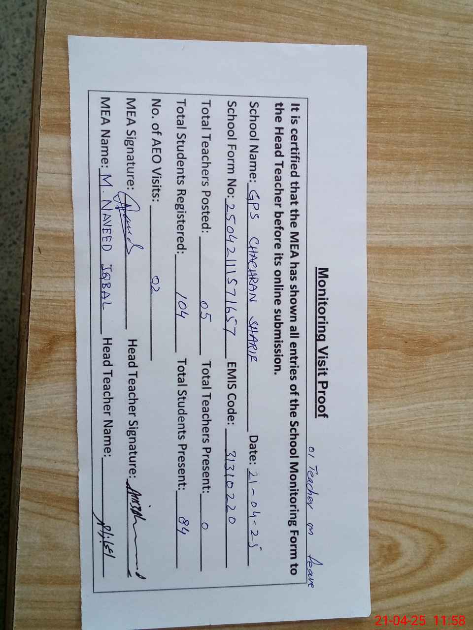 | EMIS Code: 31310220 | Name of School: GPS CHACHRAN SHARIF | |||