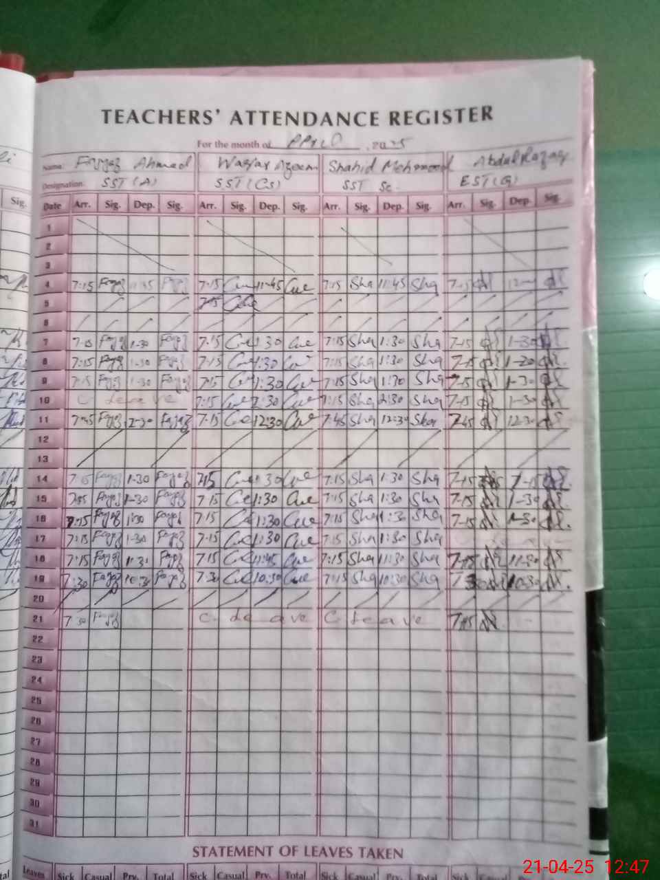 | 31**** | Wa**** Az**** | SST | Regular | 0 | 0 | 0 | 0 | 0 | 0 | 0 | 0 | 0 | Casual |