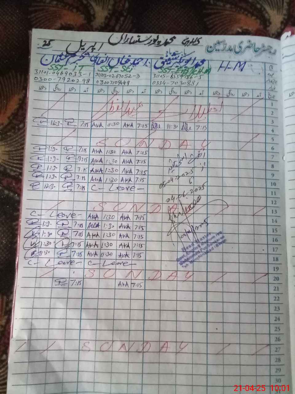 | Name: Mu**** Ab**** Ba**** Designation: (School Headmaster's/Headmistress's) SST(ENG Phone/Cell Number: 03**** |