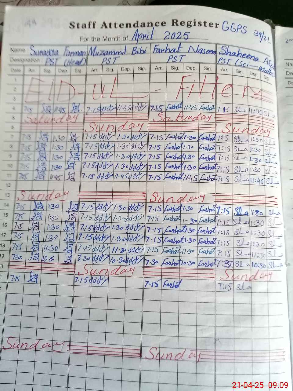| Name: Su**** Fa**** Designation: (School Headmaster's/Headmistress's) PST Phone/Cell Number: 03**** |